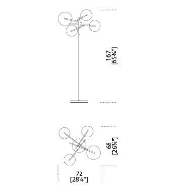 Floor lamp with LED point light (G4 2700 Kelvin). Transparent blown glass spheres. Metal parts in hand burnished brass.The hand burnished brass finish looks naturally spotted and irregular. Due to this craft made processing, each product is unique and exclusive. Dimmable light.