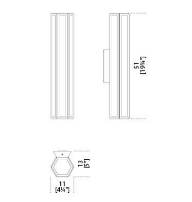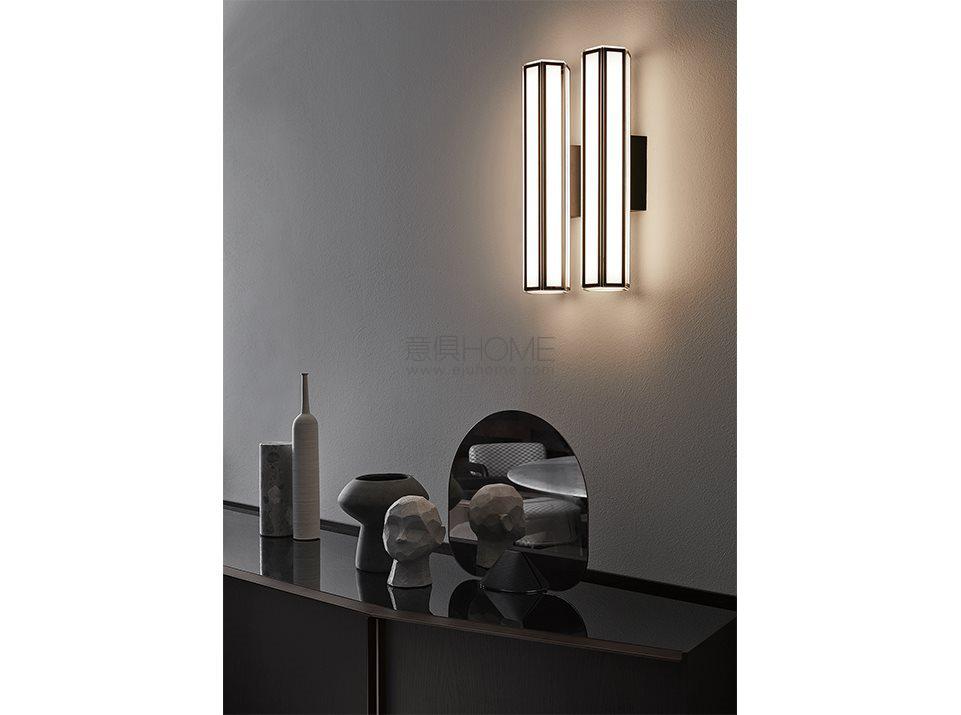 Wall light with black lacquered metal structure covered by extralight screenprinted glass in two colours, white and black. LED light (30 Watt).