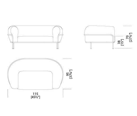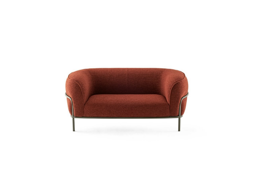 Small sofa with foam polyurethane padding. Cover in fabric or leather, available as per samples. Metal structure in Satin brass or anthracite grey lacquered metal structure.