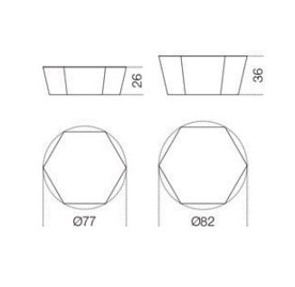 Coffee table to be placed side by side, with hexagonal conic metal base available in different versions: A “Supermirror” bright stainless steel structure with mirrored glass top. B Embossed white lacquered aluminium structure and bright white painted glass top. C Embossed black lacquered aluminium structure and bright black painted glass top. D Brass lacquered metal structure and bright brass top. On castors.