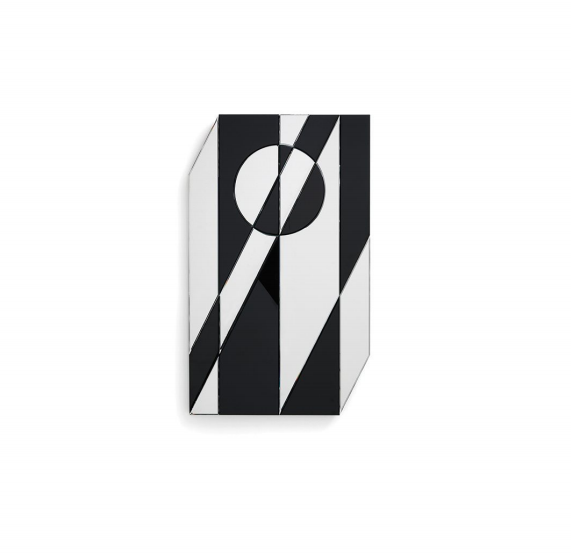 Mirror bevelled and polished by hand, bright black painted glass inserts. Made of 17 single sections.