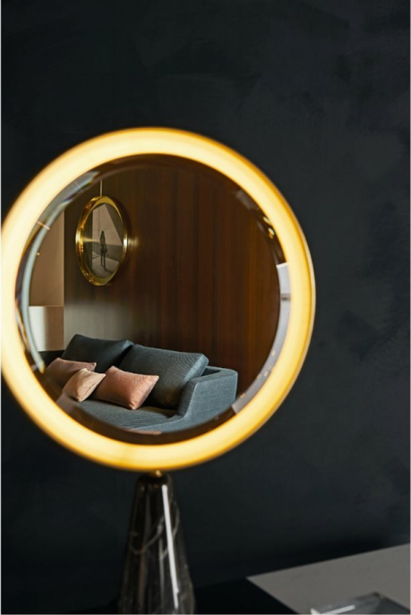 Bevelled mirror with Nero Marquinia marble base. With LED light.