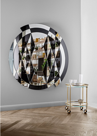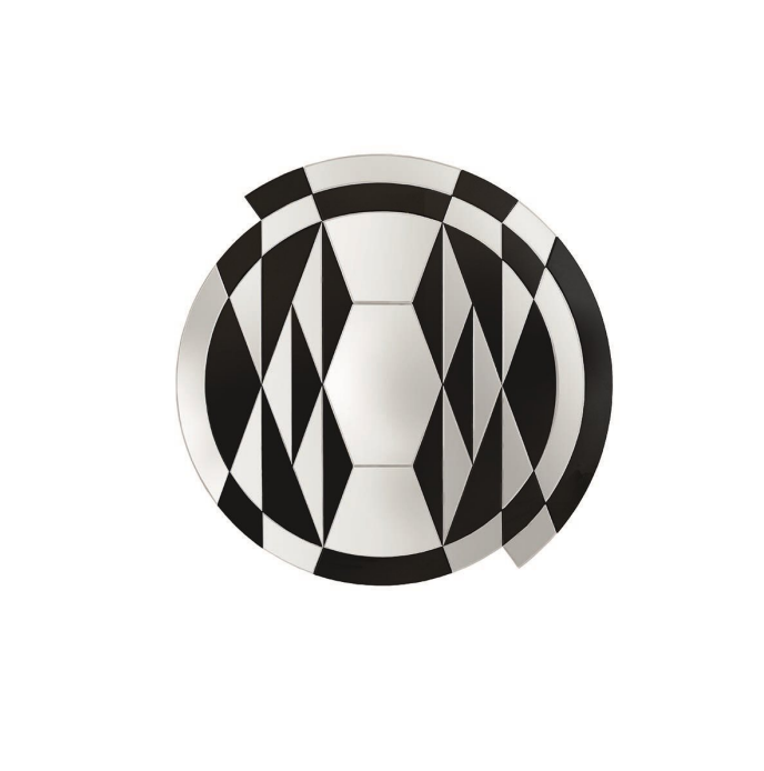 Mirror bevelled and polished by hand, bright black painted glass inserts. Made of 42 single sections. Special limited edition.