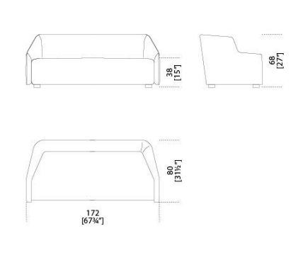 Sofa in non-deformable foam polyurethane in different density and polyester fibre with wooden inside structure. Black lacquered wooden feet. Available covered by fabric or leather. Decorative polyester fibre cushions, on request.
