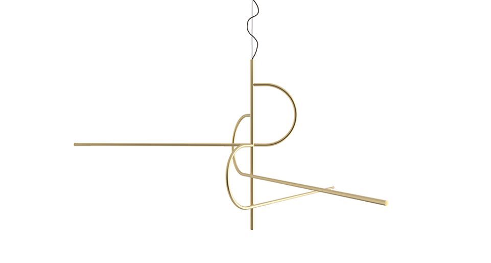 Parti metalliche in ottone satinato. In dotazione cavo di 4mt per regolare l'altezza.