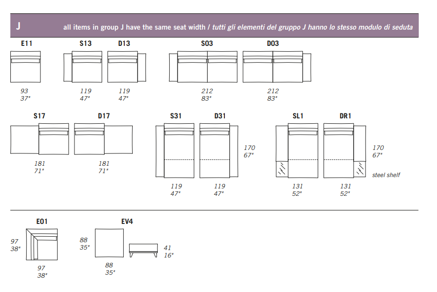 SL9 / DR9, SLO / DRO and SL1 / DR1 feature a stainless steel shelf.