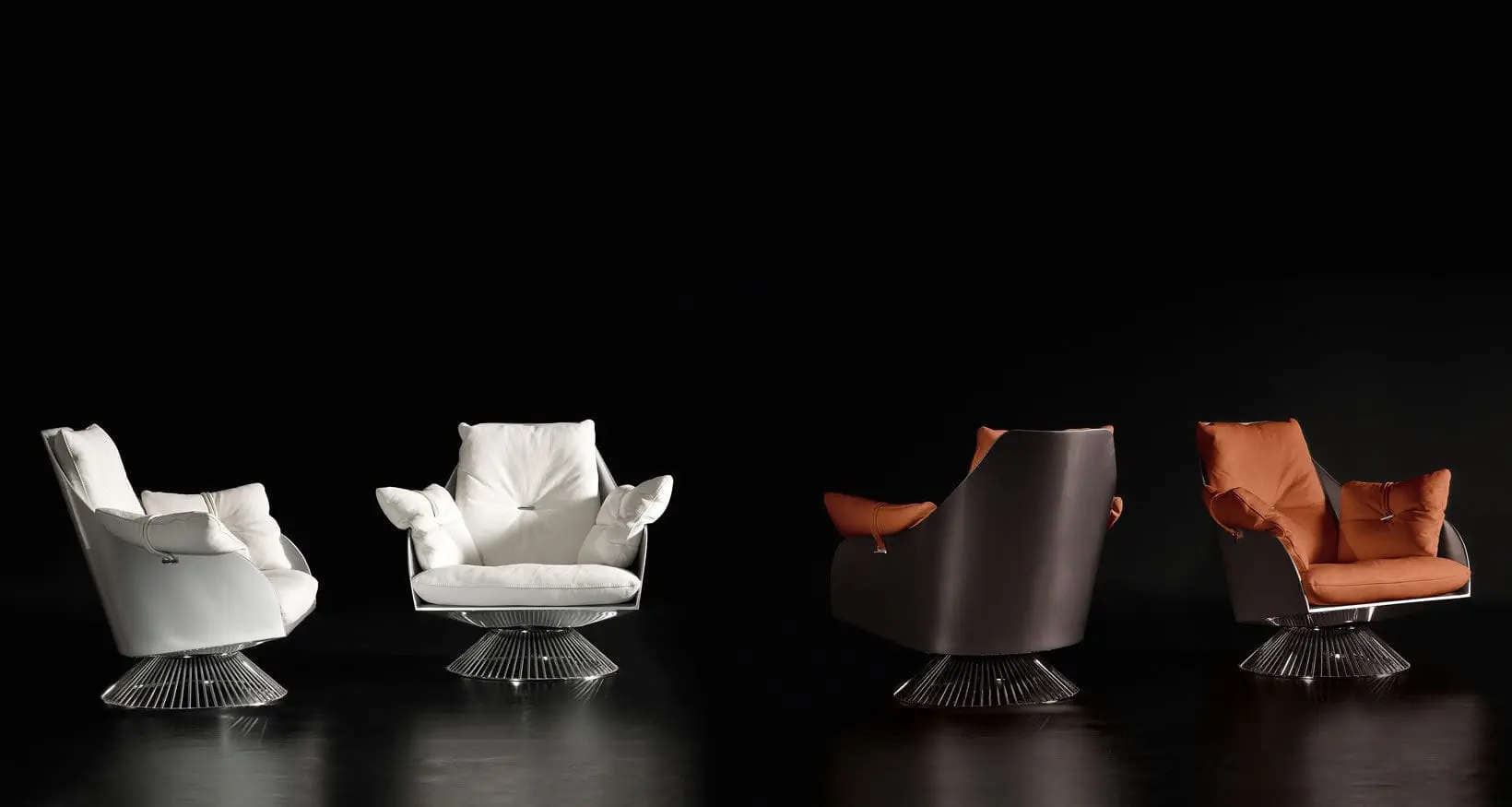 Painted frame and metal swivel base available in: RAL 9003, RAL 7044, RAL 3005, RAL 8019, RAL 9005, metallic grey, metallic anthracite.