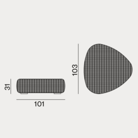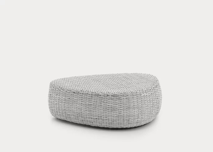 Forma triangolare con angoli arrotondati e volumi pieni caratterizzano il tavolino Panda 11, formato da una struttura e piedini in alluminio ed intreccio in fibra sintetica di polietilene Panda Resin bianco/grigio. Fibre sintetiche di ultima generazione pensate per resistere all’acqua e alla luce e per mantenere nel tempo le qualità tecniche e cromatiche, mantengono un aspetto molto naturale e durevole.