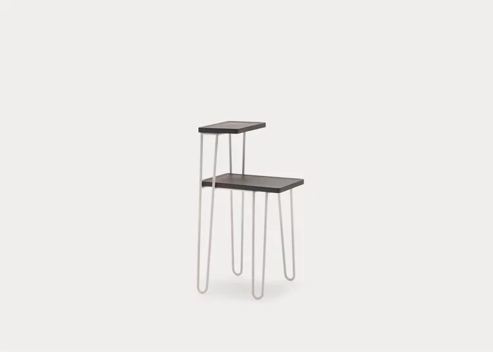Il tavolino-comodino LC 48 è espressione di grande leggerezza visiva, grazie alle gambe in tondino d’acciaio verniciato bianco o grigio finitura opaca che sembrano disegnare delle onde, unite al noce Canaletto naturale, nero, bianco, grigio, oceano o tortora del top. Due ripiani di diverse dimensioni in legno e di forma rettangolare, uno più alto e uno più basso, aumentano le possibilità di spazio di questo complemento d’arredo.