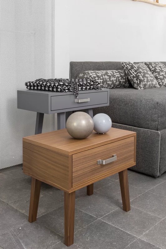 Comodino in noce Canaletto con un cassetto, maniglia in acciaio satinato. è realizzato in legno massello di noce naturale, nero, bianco, grigio, oceano o tortora ed è adatto per riempire gli spazi accanto al letto, un contenitore dai volumi compatti in cui riporre oggetti di vario genere, inoltre presenta un ulteriore ripiano inferiore rettangolare, per aumentare la disponibilità di spazio e di utilizzo.
