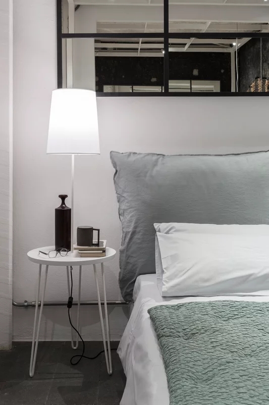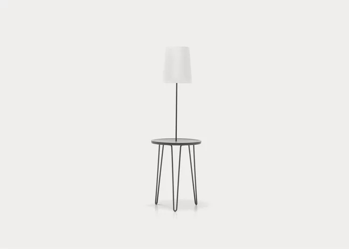 Il tavolino-comodino LC 47 unisce funzionalità ed estetica: lampada-tavolino con un’estetica asciutta che esalta la sua grande leggerezza visiva, realizzata dal connubio tra materiali diversi. Da una parte l’acciaio verniciato bianco o grigio finitura opaca delle gambe e la pergamena bianca del paralume, dall’altra il noce Canaletto naturale, nero, bianco, grigio, oceano o tortora del top.