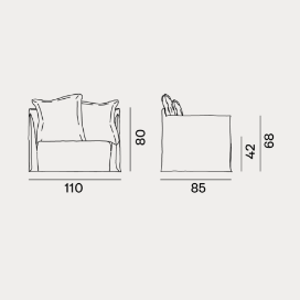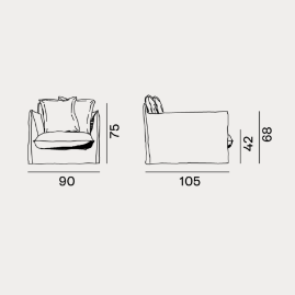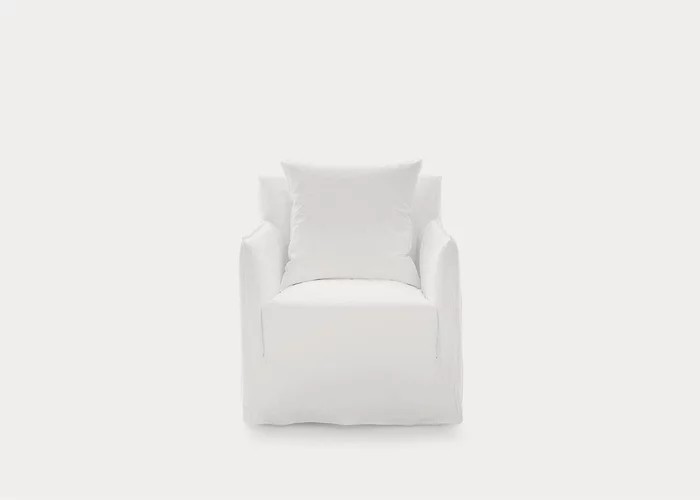 Le poltrone della famiglia Ghost hanno schienali con altezze differenti e sedute di varie dimensioni, hanno una struttura minimale e sottile imbottita in poliuretano espanso e cuscini volanti in misto piuma. La caratteristica principale delle poltrone Ghost è il rivestimento sfoderabile, una housse oversize il cui profilo è sottolineato dalle cuciture a vista, che permette ai prodotti di svestirsi e rivestirsi in un baleno. Si tratta di un progetto tessile che cambia facilmente volto, permettendo di passare da un look elegante ad uno informale con facilità e velocità.