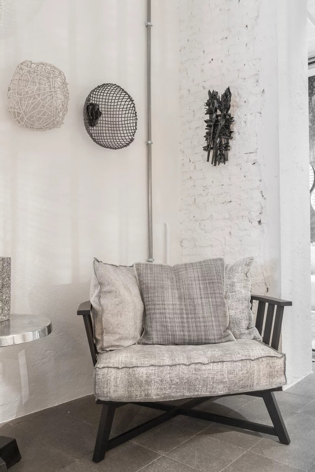 Gray 07 è una poltrona in legno il cui segno distintivo è un avvolgente schienale basso forma di semicerchio realizzato con doghe. Le gambe in legno massello si intersecano formando una croce. La struttura è realizzata in noce Canaletto verniciato naturale, rovere sbiancato o rovere laccato bianco, grigio, nero, oceano o tortora. Per un maggiore comfort un set di cuscini volanti ne accentua la morbidezza.