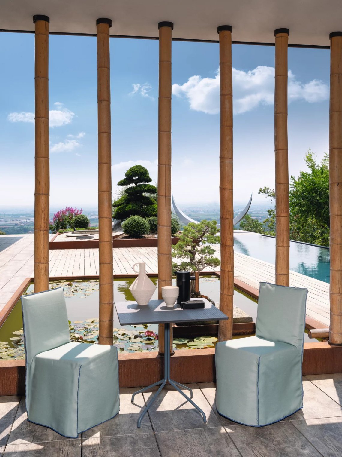 Il piacere del convivio all’aria aperta declinato in tante forme diverse: la famiglia di tavoli Brise suggerisce nuovi modi di pensare la tavola outdoor, che sia per tanti ospiti o per pochi intimi. Le basi dei tavoli dining sono in tubolare di acciaio inox nei colori Oxido, Slate o Pearl. Piani disponibili in lamiera forata zincata nei colori Oxido, Slate o Pearl, o in cemento con decoro nei colori grigio o bianco.
