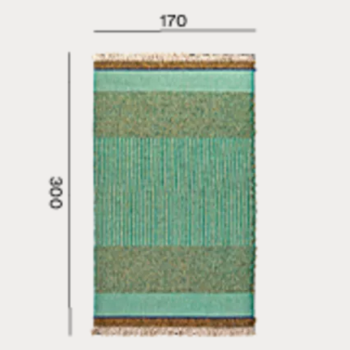 Il progetto nasce da una profonda attività di ricerca portata avanti dall’azienda insieme alla designer: i tappeti, prima disegnati e realizzati su telai a navetta a lancio manuale, sono stati sviluppati successivamente su un telaio industriale riadattato e portato all’estremo per creare trame dal look artigianale. Elena Sanguankeo trasferisce nella collezione ECO la sua esperienza nel mondo dell’alta moda mettendo in trama filati, colori e punti diversi da cui nascono le tre varianti: Green, White e Natural. La sintesi tra tradizione e innovazione emerge anche nella scelta dei materiali utilizzati, iuta e propilene, entrambi idonei per l’utilizzo in esterno e resistenti all’acqua. Disponibili nelle dimensioni 170 x 300 cm e 80 x 240.