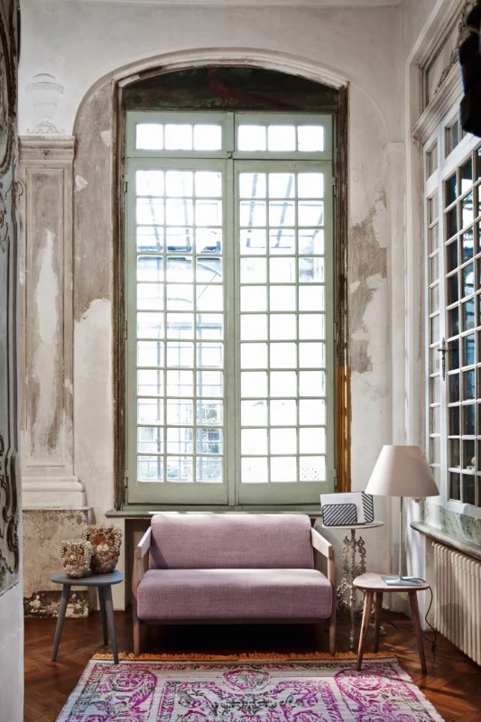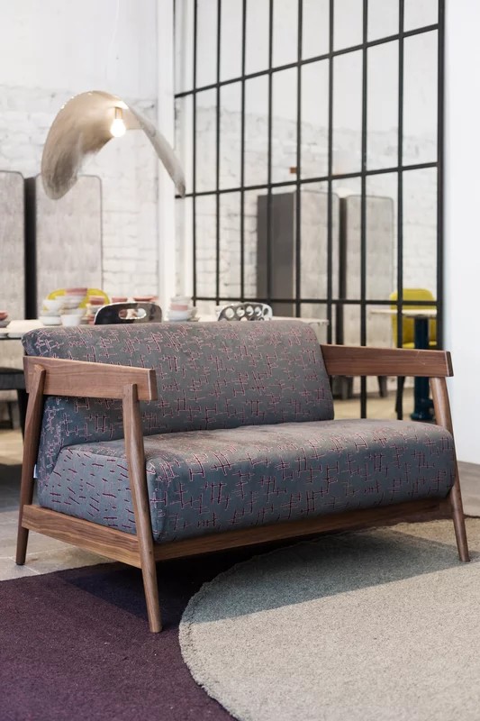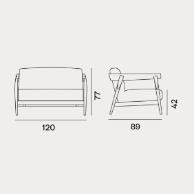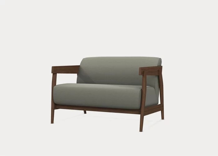 Divano a due posti in legno massello di noce Canaletto naturale, rovere sbiancato o rovere laccato bianco, grigio, nero, oceano o tortora, Brick 309 ha la seduta e lo schienale ammorbiditi da un unico importante cuscino imbottito in poliuretano espanso dal rivestimento sfoderabile. I diversi elementi in legno che compongono la struttura sono evidenti, ed inclinati e sovrapposti.