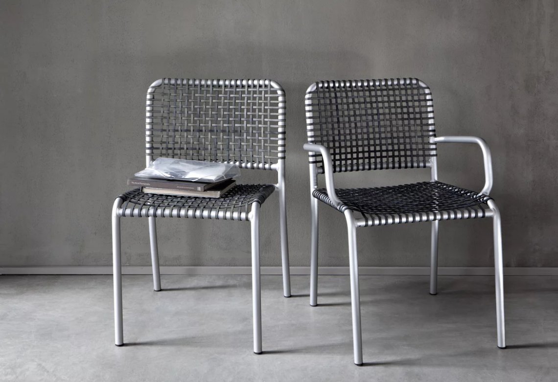 Versatile e confortevole, la famiglia di sedie Allu combina la leggerezza e l’essenzialità della struttura in tubolare d’alluminio anodizzato ad un gioco dinamico di texture, creato dall’intreccio in pergamena naturale o grigia. Capace di inserirsi in ogni ambito, dal domestico al contract, Allu è un prodotto caratterizzato da linee pulite e da forme geometriche ed essenziali, e si declina in due varianti: sedia e poltroncina con braccioli.