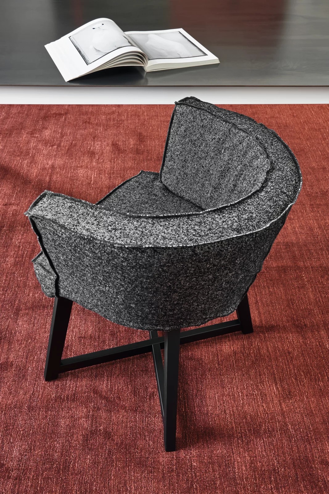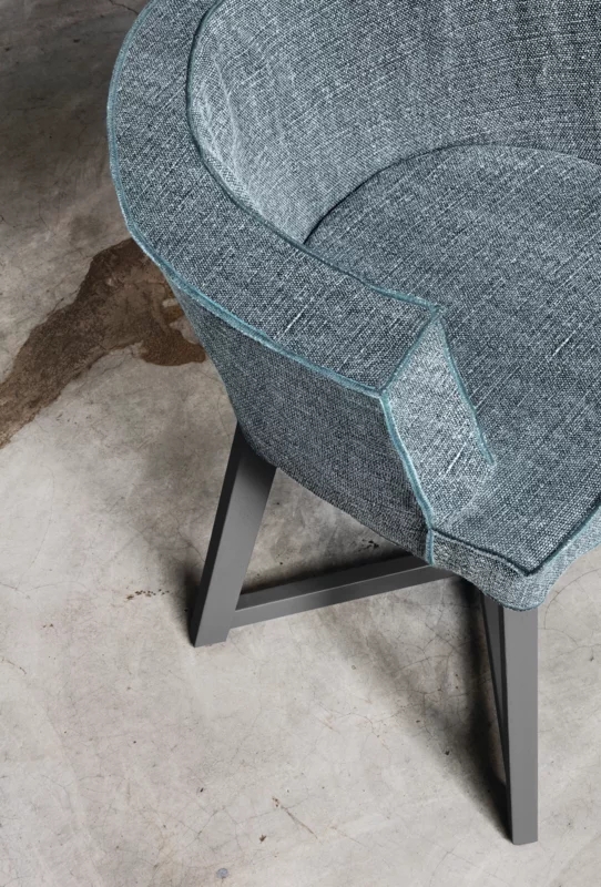 Famiglia di poltroncine dining con avvolgente schienale a forma di semicerchio, Gray 26/27 sono disponibili con seduta e schienale imbottiti con rivestimento sfoderabile e cucitura a vista. Le gambe in legno massello si intersecano formando una croce. La struttura è realizzata in noce Canaletto verniciato naturale, rovere sbiancato o rovere laccato bianco, grigio, nero, oceano o tortora.