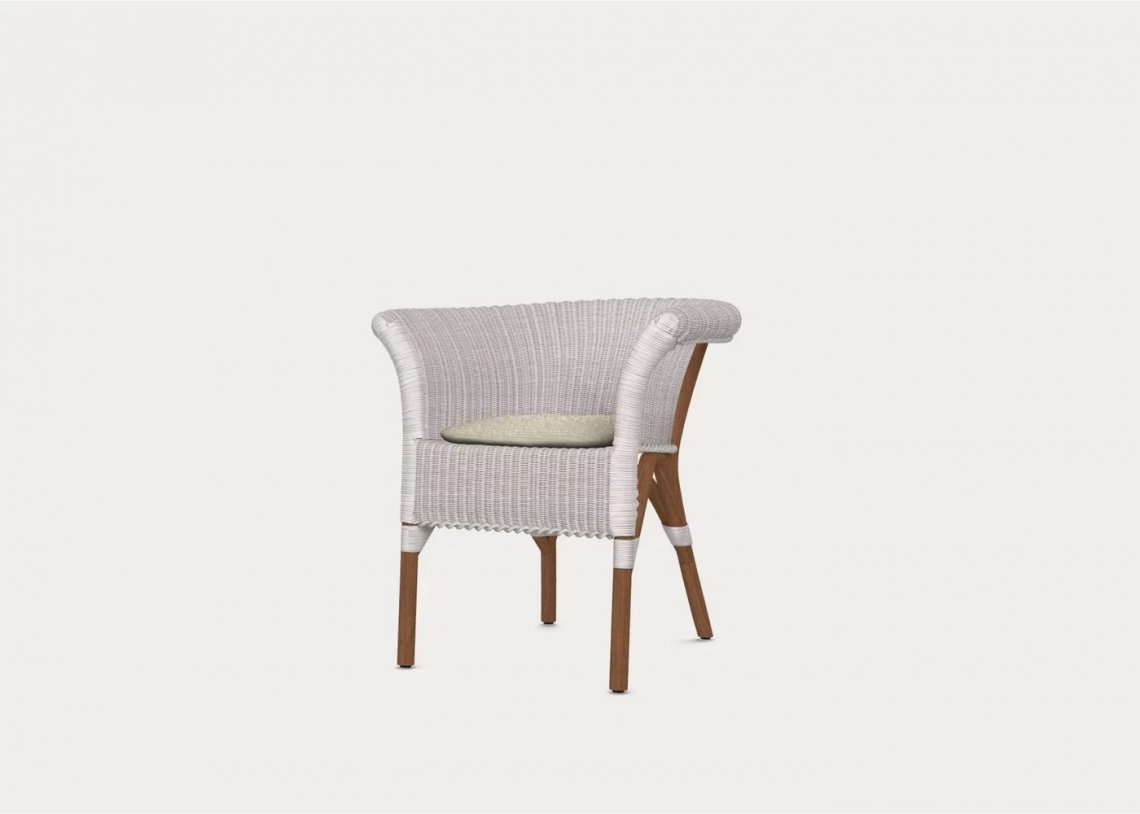 Atmosfere estive e rilassate sono evocate dalla Poltroncina WE 25, che combina savoir-faire artigianale e materiali esotici grazie ad una struttura con schienale avvolgente in malacca, materiale di origine indiana simile al bambù, intrecciata con polietilene ad alta densità bianco.