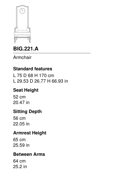 Structure in beech wood and foam. Upholstery in fabric cat. B | L.14.27. Frame in black lacquered finishing. Clock on the back.