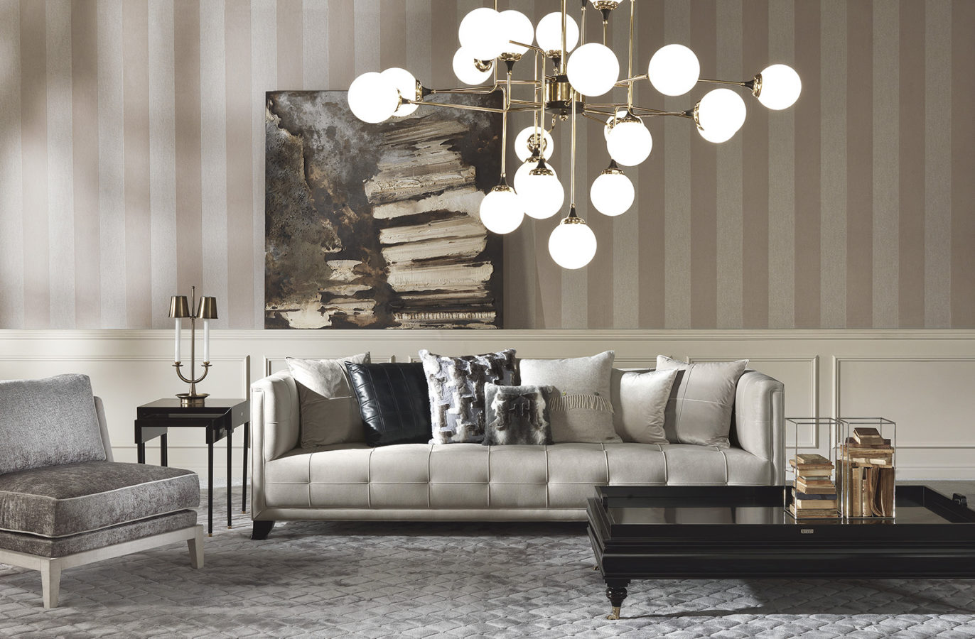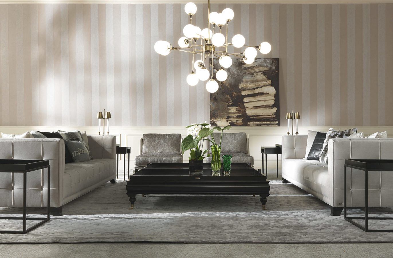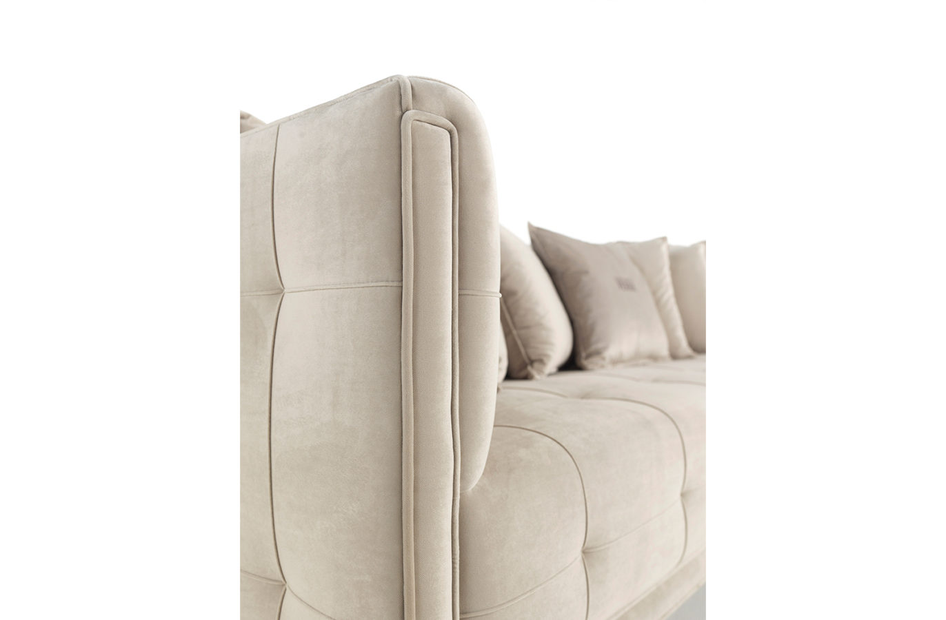 4-seater sofa with structure in beech wood and foam. Upholstery in fabric cat. A | L.16.01. Legs in black lacquered finishing.