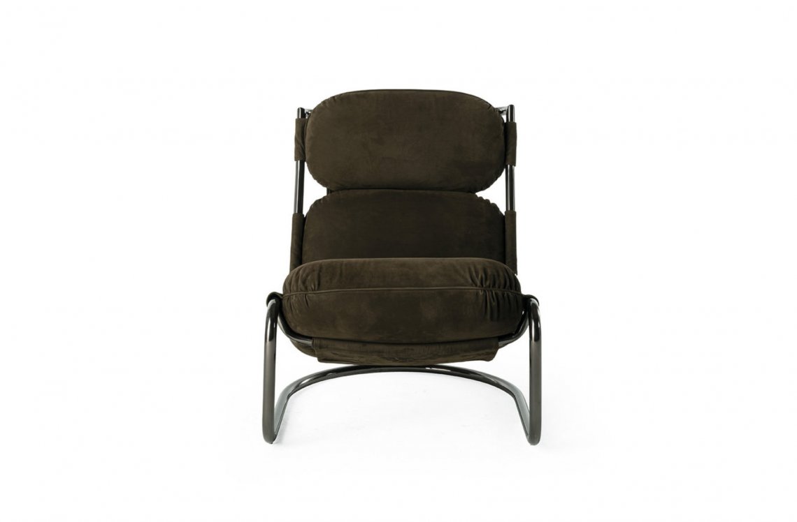 Captivating lines and retrò inspiration for Columbus armchair. Featuring a tall seatback and a generous seat, the armchair combines an inviting aesthetic with the highest level of comfort.