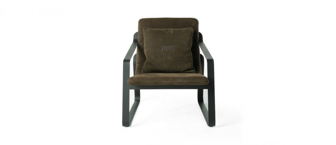 high density polyurethane foam. Upholstery in leather cat. B Nabuk L.08.06 Brown.