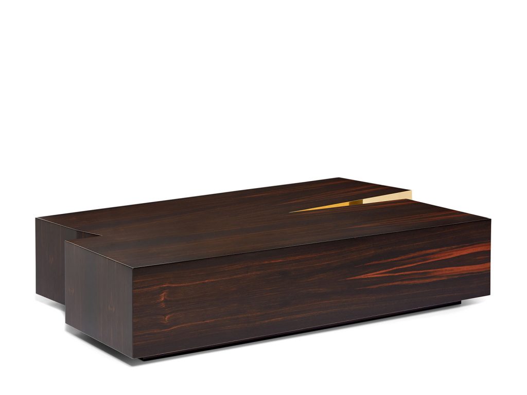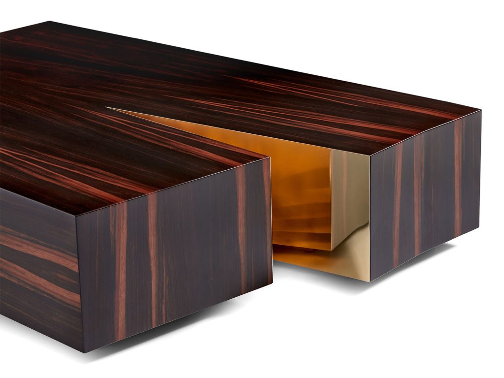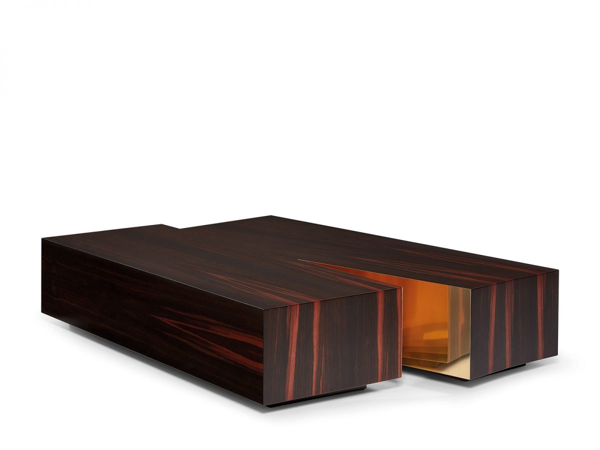 The Terra Coffee Table is designed to become a central territory in any living space. From the intersection of geometric shapes, a plain arises from the ground. In the plateau they form, a valley of unforeseen reflections is created. An intricate design with a functional element, aligned with the visual vocabulary of the brand.