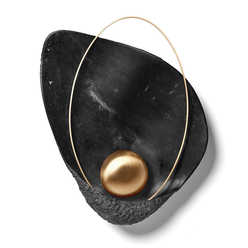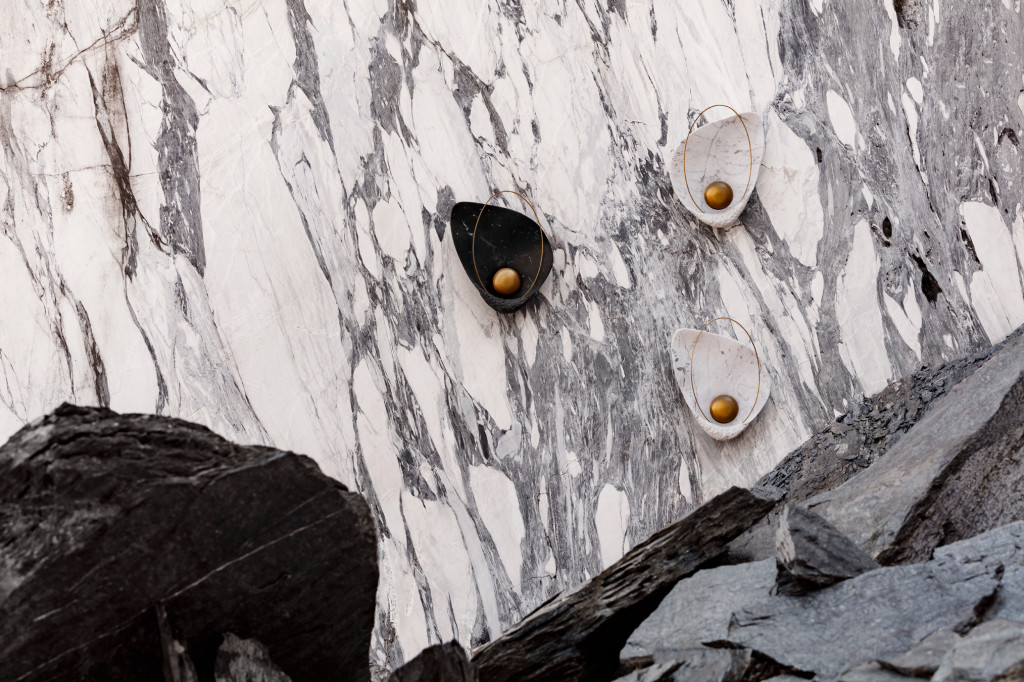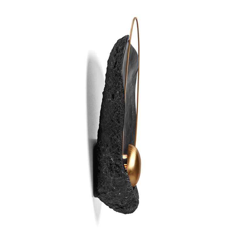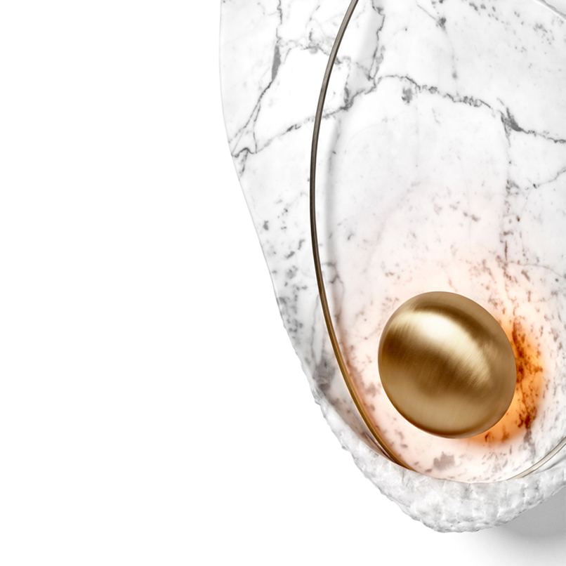 The Pearl Wall Lamp is a poetic handcrafted tribute to Nature’s mysterious ways. The piece, made in marble and metal, represents one of its quintessential attributes – serendipity. The magnificence of pearls, when produced naturally by oysters, is as breathtaking and it is exquisitely rare. The Pearl Wall Lamp’s marble shape is carved by hand, making each piece, much like a natural pearl, an absolutely unique sculpture.