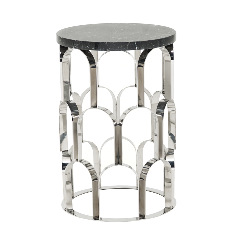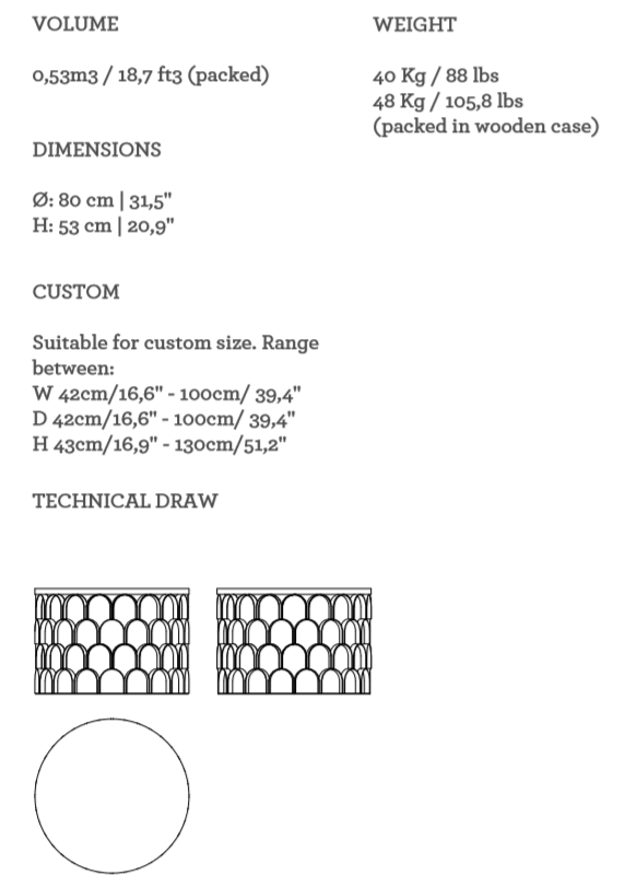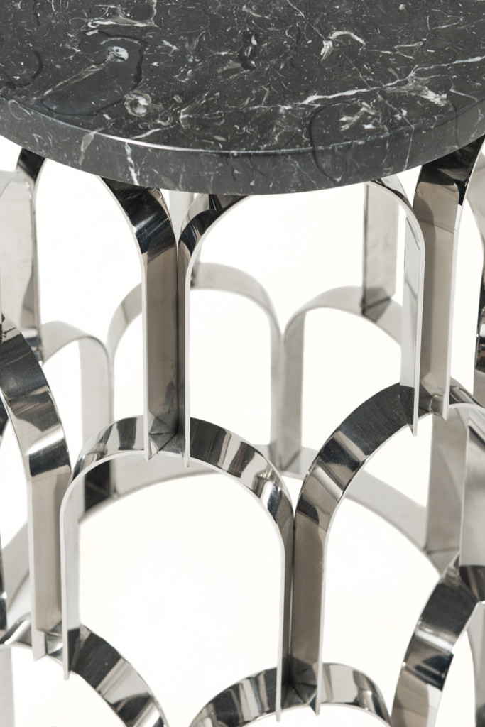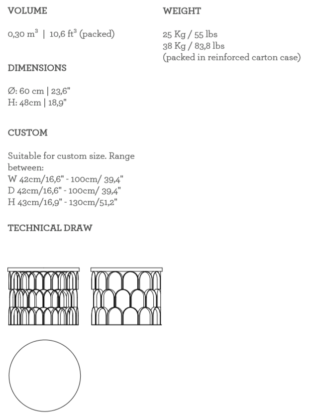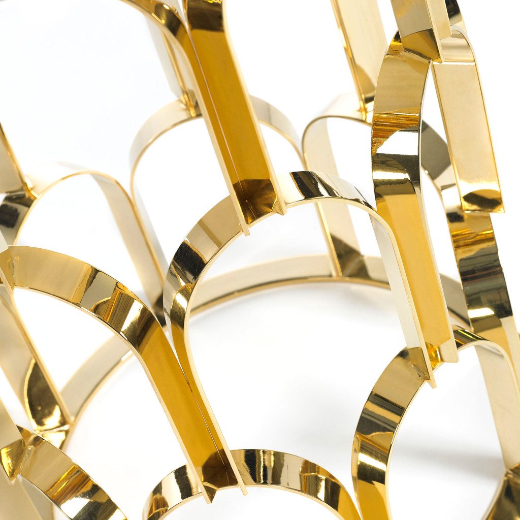 The texture of the pineapple is reinterpreted in a three-dimensional geometrical pattern with a seductive and alluring marble top. The piece creates a subtle dance between light and shadow, opacity and transparency.