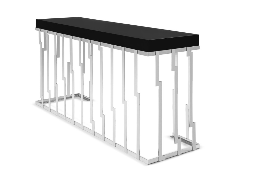 The everlasting encounter between the sea and the land is captured by the geometrical pattern of the metal structure of the Cliff Console. This abstract composition mirrors the repetition of shapes found in Nature. The piece is balanced by a simple and delicate lacquered top.