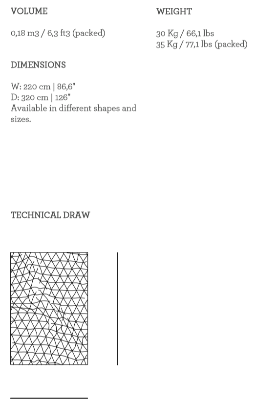A poetic exploration of the cellular pattern, the Rumpled Rug’s structural features provide a playful disruptive look to any living space.