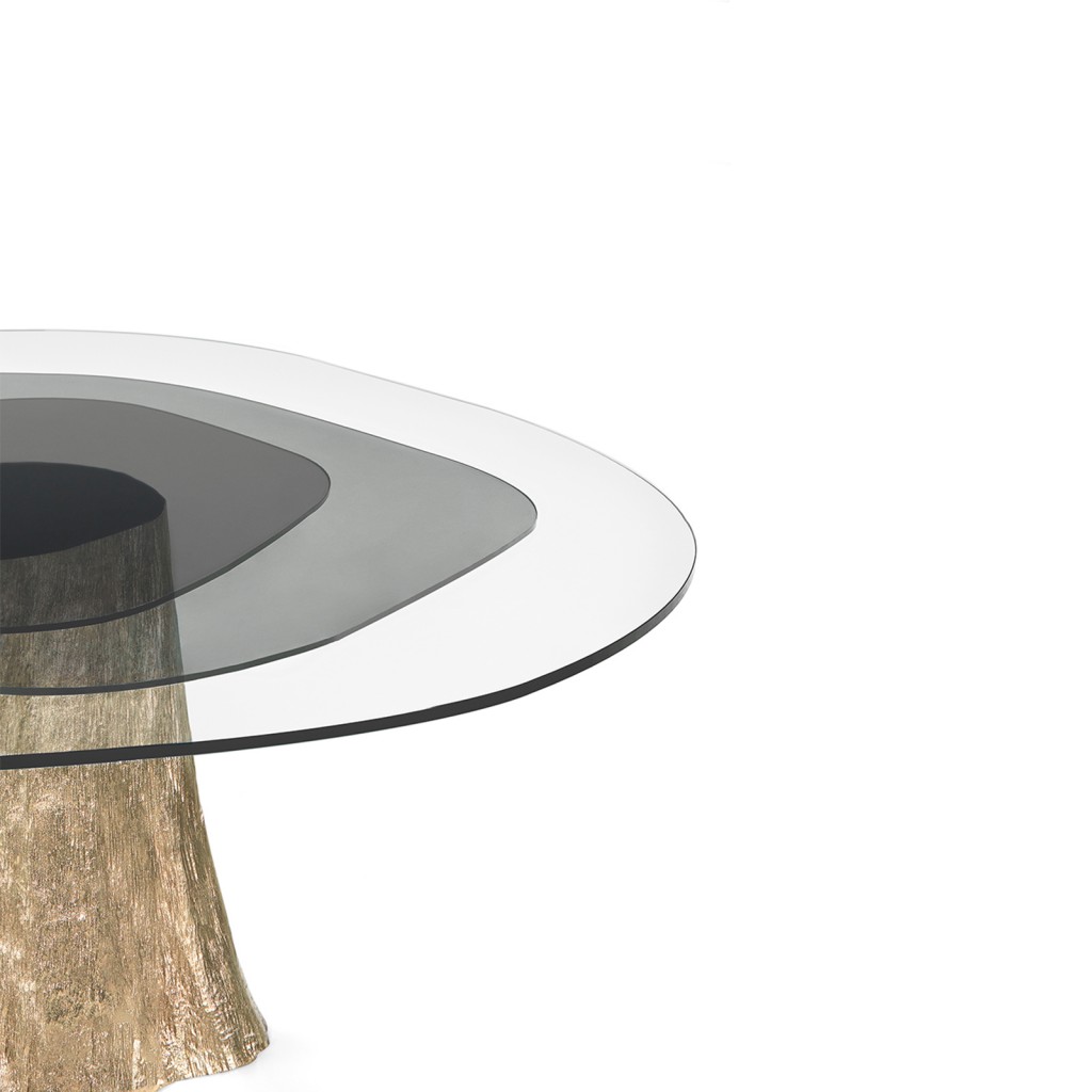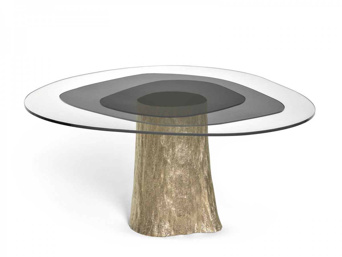 The Pantano is the vessel of the energy of slow moving waters. They may seem still, but they hold the source of life. The base is made of brass casting of an oak trunk, while the top is composed of three layers of glass, subtly conveying the depth of wetlands. A sense of lightness of being for a living space.