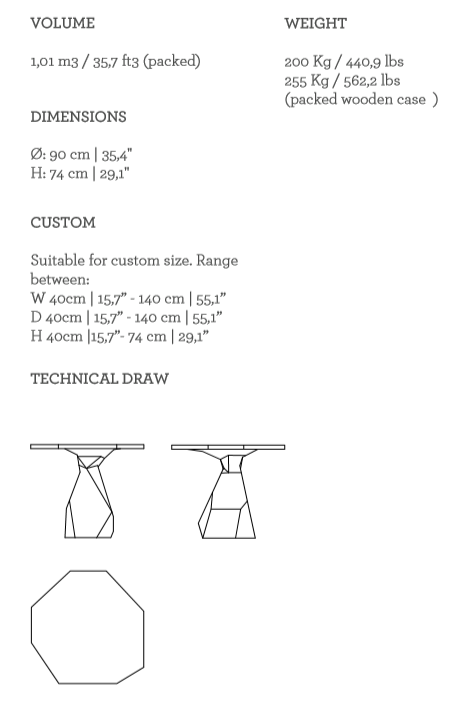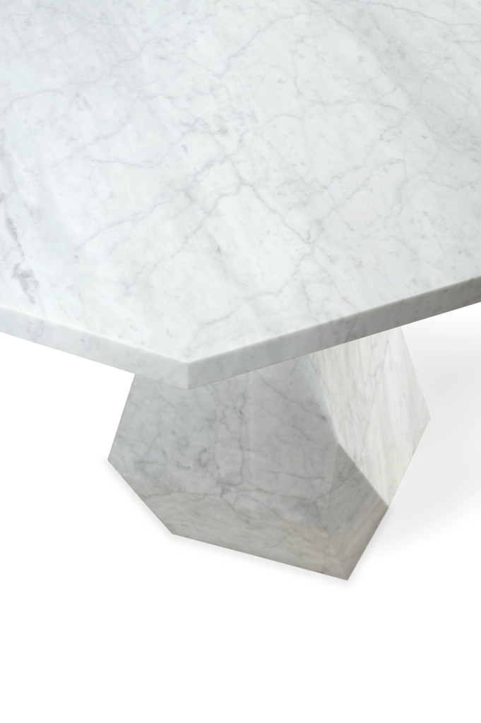 Encapsulating the commanding presence of Nature, the Rock Dining Table is a bold design statement. Made from a single block of marble, the Rock is a soothing yet unmistakable presence. The likeness of its faceted geometry can be found in Nature in raw form.