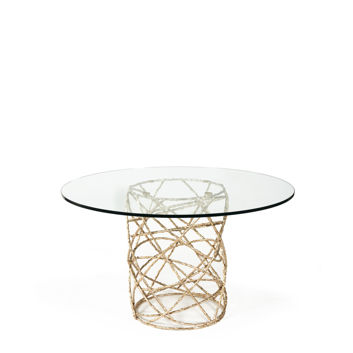 Eternalized rosebush branches, molded in brass casting, give a perennial feel to this elegant table. The bottom structure is assembled by hand by artisans, while the minimalistic top offers a soothing and quiet balance to this piece.