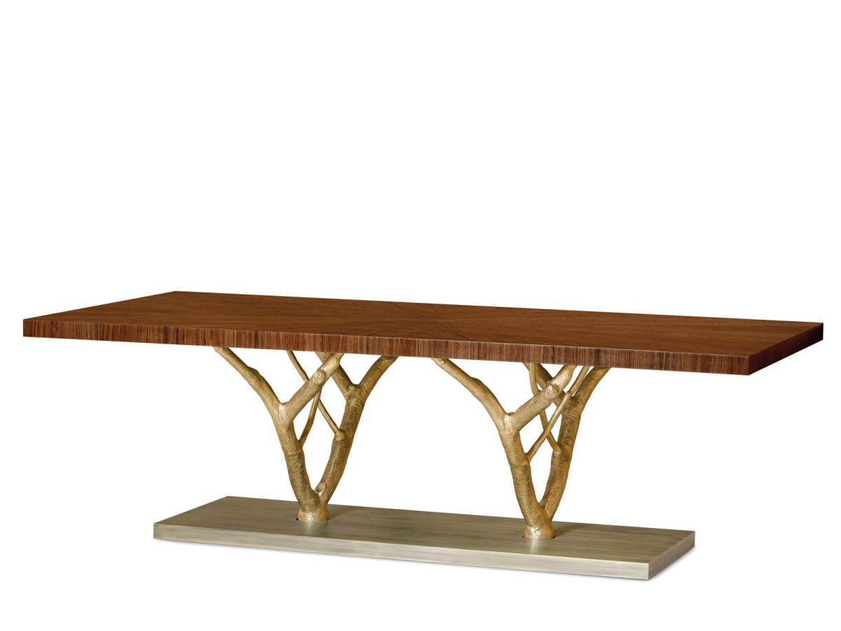 Nature’s forms, materials and textures are immortalized in striking fashion in this piece. The structure is molded in brass casting from magnolia tree branches, providing function to its natural form. The metal base and wood marquetry top deepens the piece’s connection with earthy materials. The softness and ruggedness of the materials is a testament of Nature’s paradox: complex, yet simple.