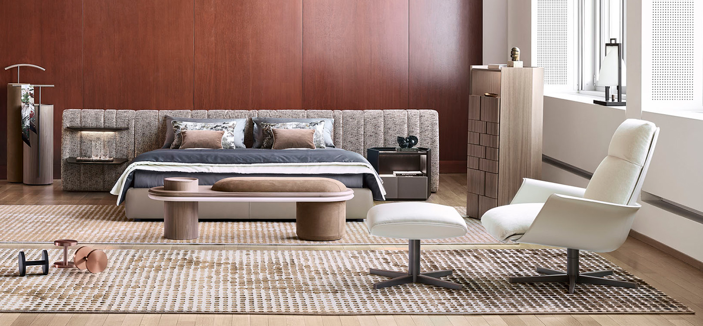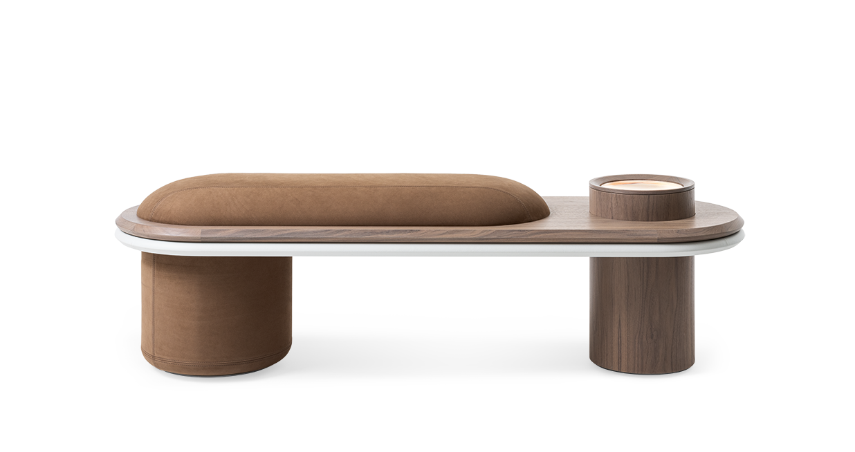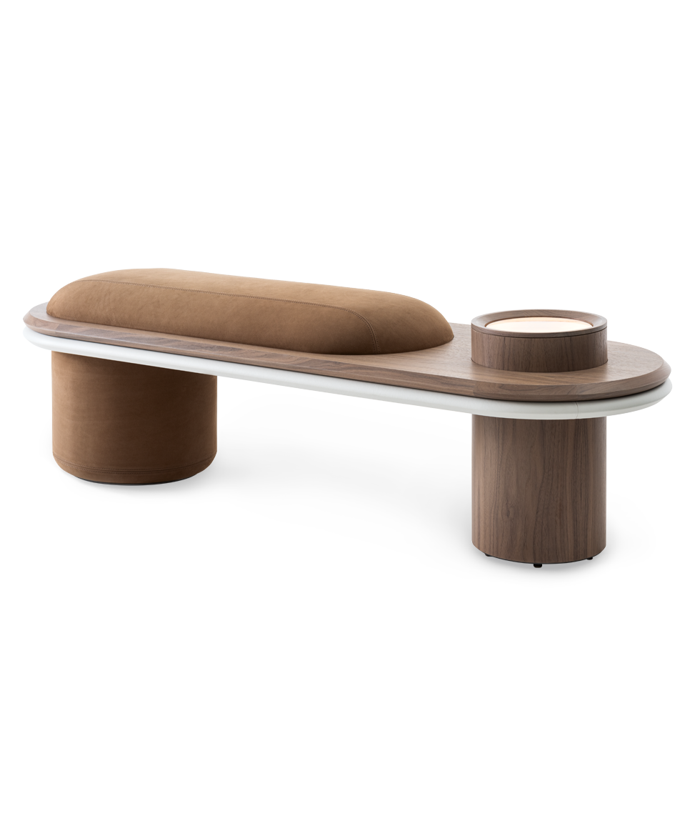 Designed for intimate and cozy spaces, Liz-bench is distinguished by the softness of its cylindrical shapes.