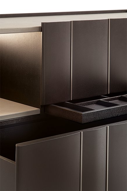 The Delphi tall dresser blends aesthetics and functionality for an elegant home landscape.