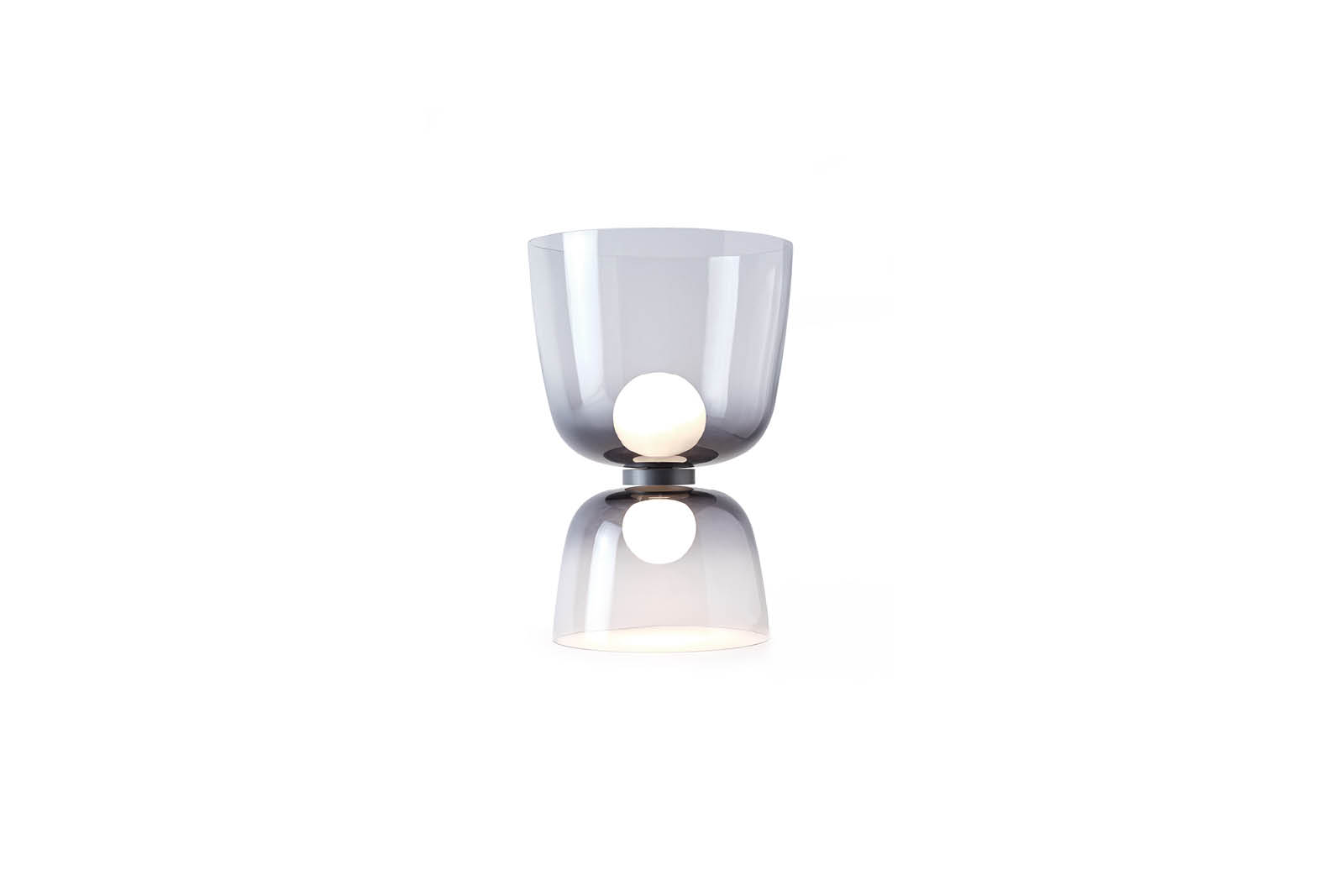 Double medium lamp with two bowls in Venetian "Murano" graded smoked blown glass. 2 G9 led lights, max 5W, needed (not included).