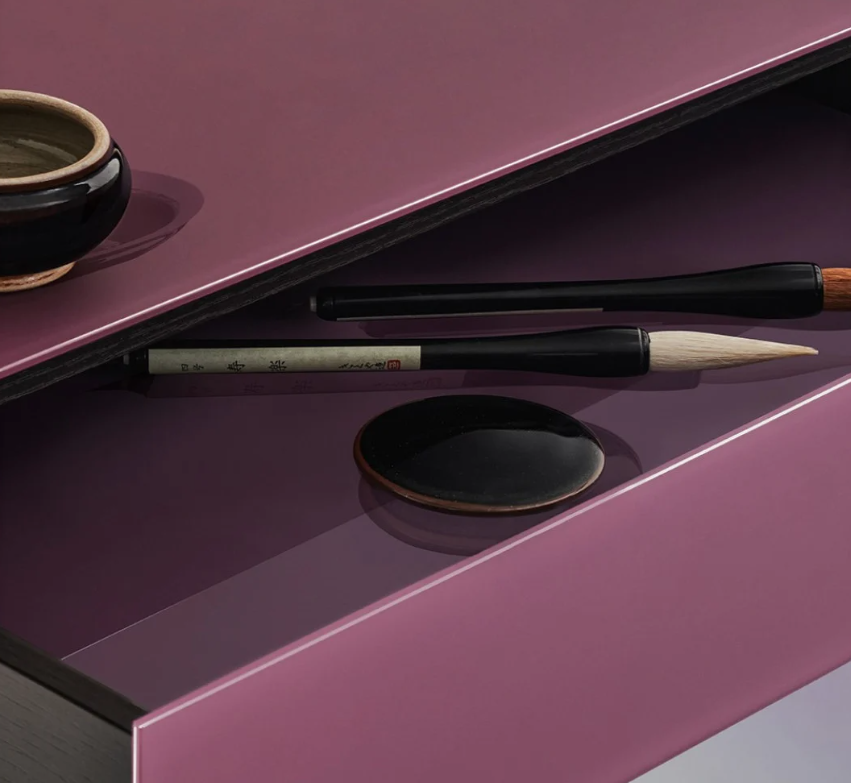 Consolle dalle raffinate ed innovative soluzioni tecniche ed estetico-decorative. Sulla superficie inferiore del top, in cristallo extrachiaro stratificato 10+10 mm, è incollato a UV un cristallo extrachiaro curvo con funzione porta oggetti, mentre sulla superficie superiore è fissato un cassetto con apertura push-pull, rivestito in cristallo laccato lucido. La piantana verticale è in cristallo temperato stratificato 12+12 mm con finitura trasparente extralight o nella gamma dei Cristalli Trasparenti Colorati. Top e piantana sono assemblati e smontabili tramite una coppia di piastre metalliche lucidate a specchio. La base, fornita di piedini regolabili e fissata alla piantana verticale in maniera removibile, è rivestita in specchio mm.10. Il cassetto può essere montato con apertura sul fronte o sul retro.