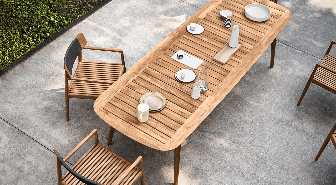 This nod to nautical heritage is no accident - finely tapering legs that hint of masts, the beautiful hull-like radii of table edges and the generous deck like slats themselves. Inspired by teak decking on the fastest and finest vessels of yesteryear, the Clipper collection echoes the design notes of these pivotal feats of craftsmanship - the Tea Clippers that opened trade routes around the world.