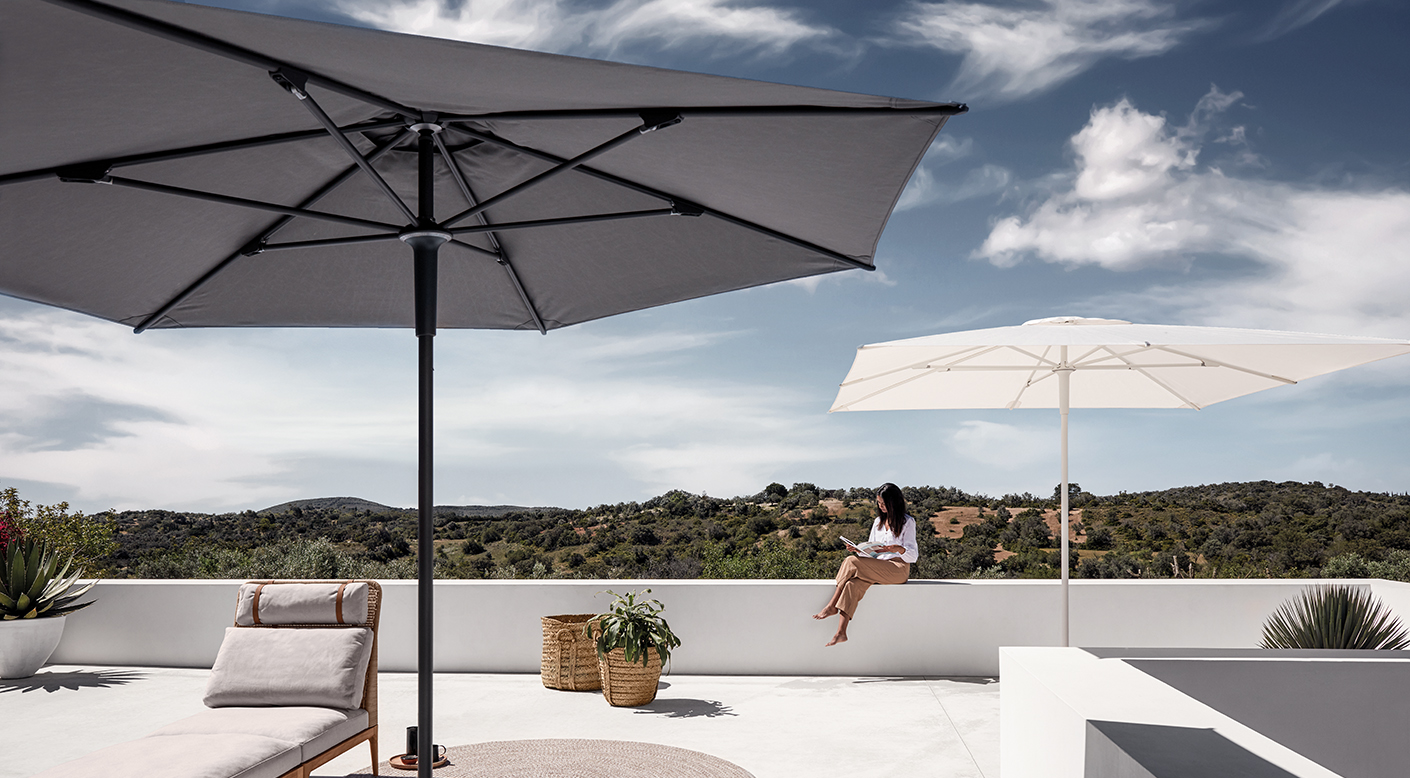 Although we all crave the sunlight, shade also has it’s own unique appeal. The Halo collection of parasols feature sturdy, aluminium frames and heavy-duty Sunbrella fabric canopies. Available as both standard push-up and practical cantilever versions, with Halo, somewhere to cool off and get away from the midday sun is never far away.