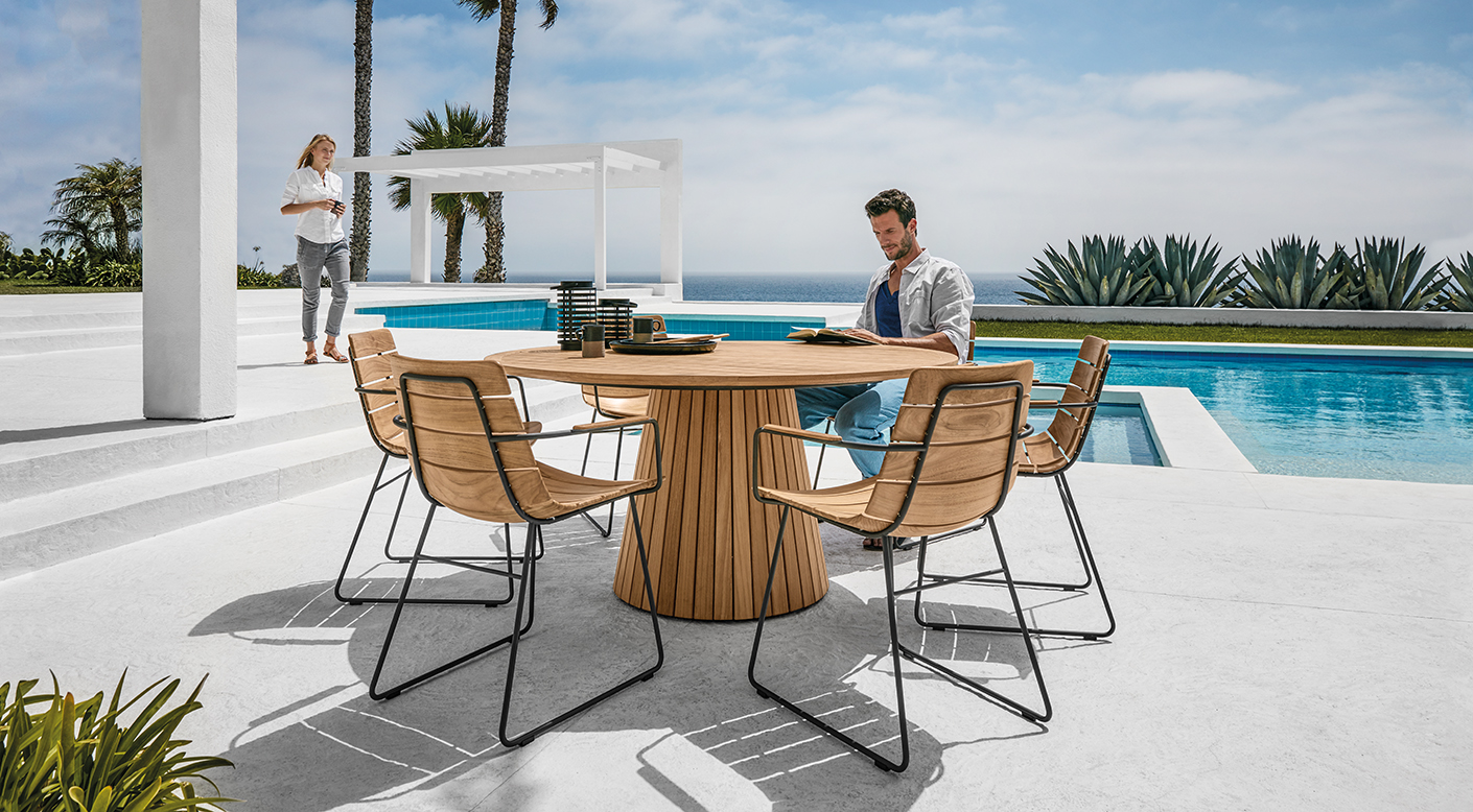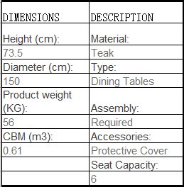 -Whire-Teak Round Dining Table 圓餐桌