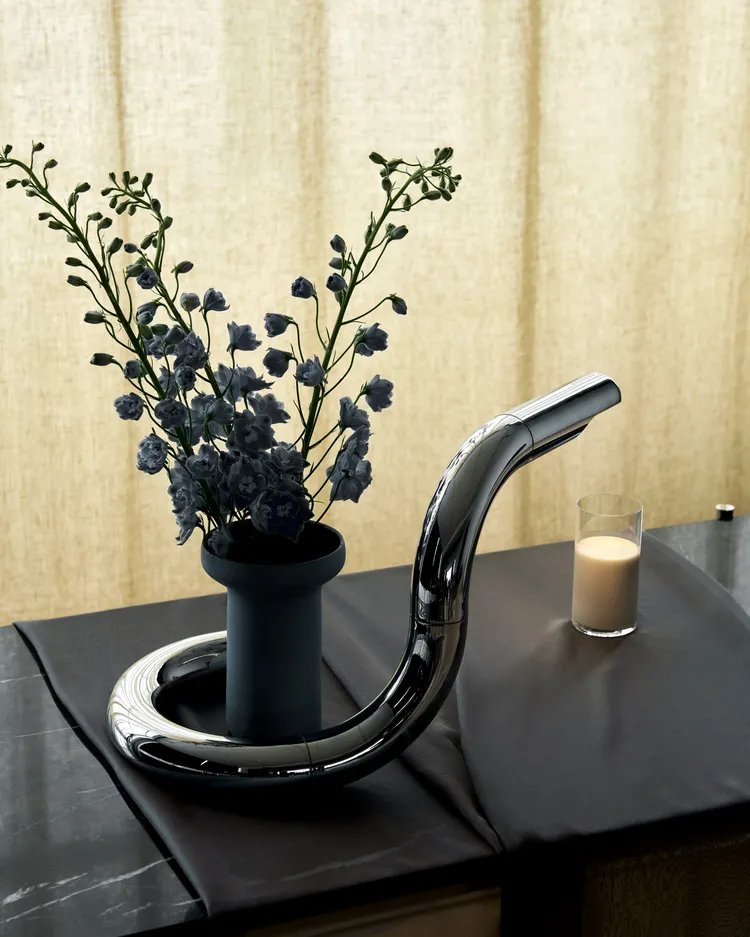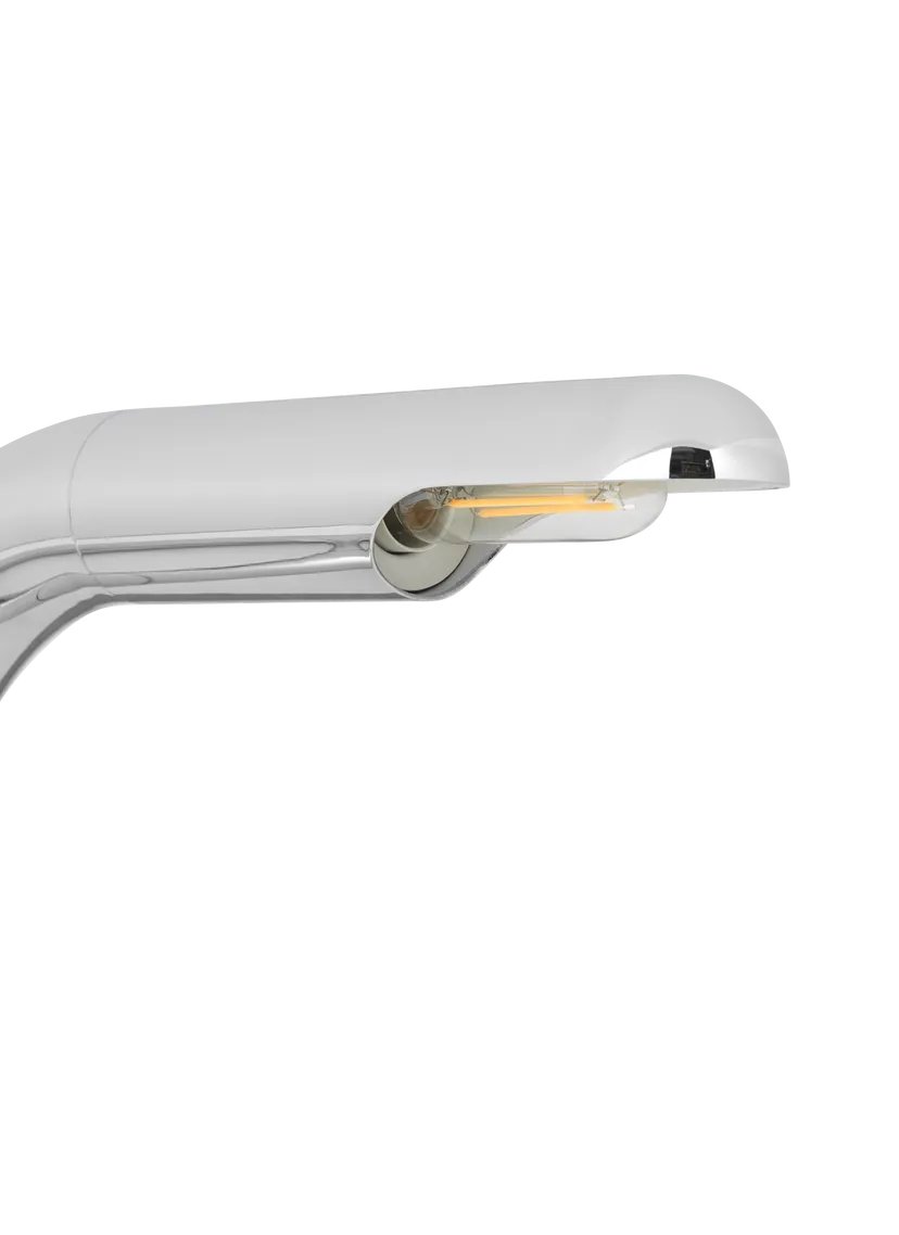 Serpentine in shape, beautifully balanced and gleaming like a jewel, the Aspide Lamp by Gianfranco Frattini is both a brilliantly practical piece of industrial design and an irresistibly playful design statement. First developed in 1970, the Aspide is a highly adjustable table lamp that looks like no other light before or since, but which still expresses the material and aesthetic tastes of its time. The Aspide was designed as a versatile task lamp that can be manually adjusted to create either direct light for work or reading, or turned toward the wall to create a softer, ambient glow; infact the body of the lamp can be manually rotated 350o in both the neck and the head.