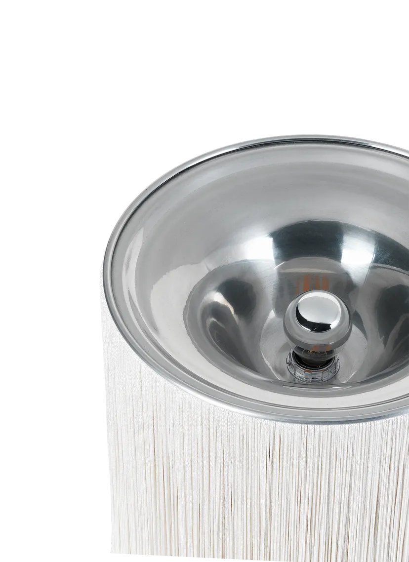 First released in 1961, the Model 597 by Italian virtuoso Gianfranco Frattini is the lamp that launched him as a lighting designer. Its unique and playful form perfectly encapsulates Frattini’s extraordinary approach to the aesthetics of light. Model 597’s unique nylon fringes were inspired by both the world of fashion and the fringed entrance curtains commonly found in Italy’s bars and grocery stores in the late 1950s. Thanks to the array of lateral bulbs, the Table Lamps emit a 360o play of indirect light, softened by the fringes to create a rich ambient glow, while the reflective aluminum cover adds warmth to the uplight.