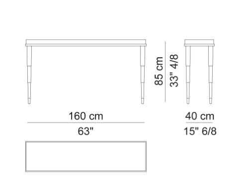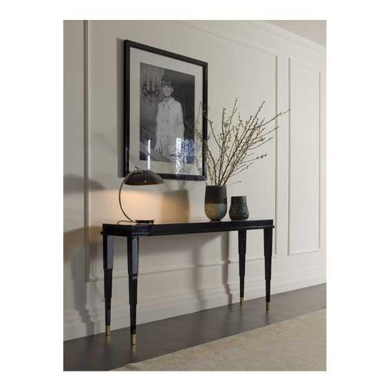 Consolle with lacquered top. Lacquered solid wood and wooden panels structure with satin brass or bronze finish legs ferrules.