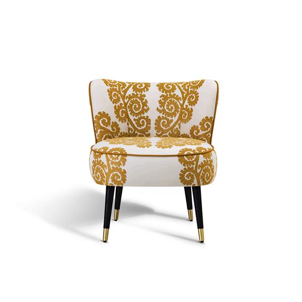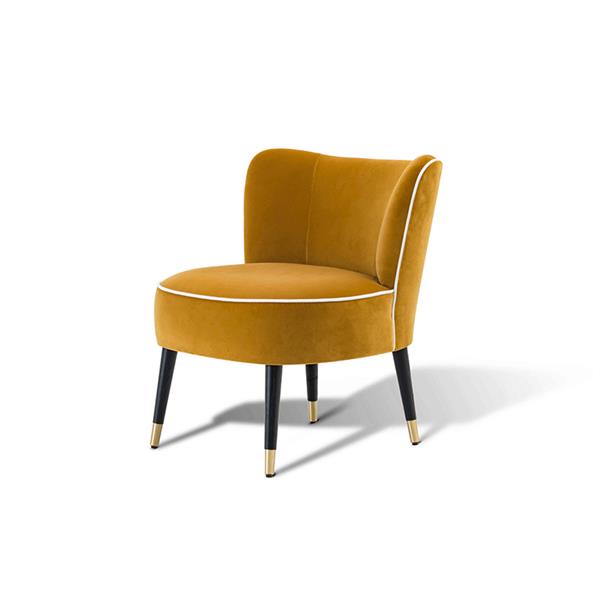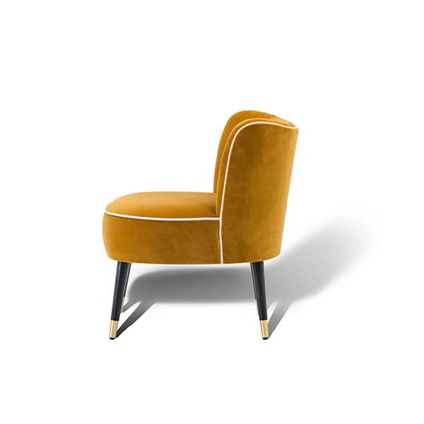 Tissi lounge chair is an elegant and comfortable piece, distinctive for its soft rounded silhouette that seem to float in midair supported by four thin legs decorated with brass legs ferrules. This item will be decorative and functional for any kind of environment, as in the bedroom, as in the entrance hall or in the living room