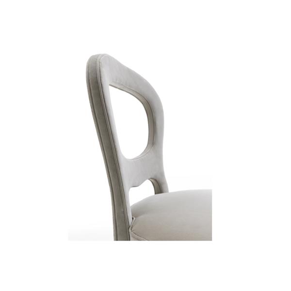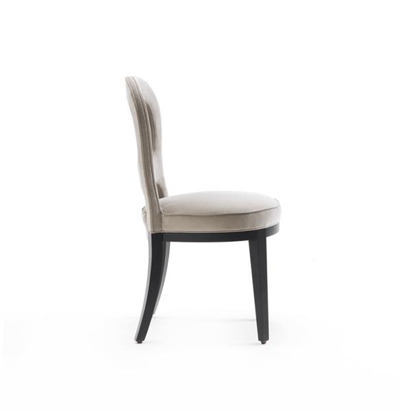 Dining chair with solid beech wood structure. Plywood seat. Polyurethane foam and polyester fiber lining. Non-removable cover. Gros grain piping.