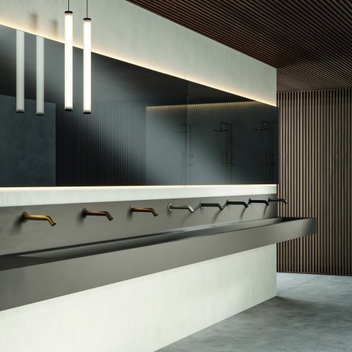 More hygiene. In fact, the faucet is used without direct hand contact, reducing the possibility of viruses and bacteria settling on its surface. The essential lines also make it easier to clean and maintain. More savings. Timed water supply ensures that the faucet is used only as long as necessary, avoiding waste. More resistance. Activating the faucet without touching it makes it less susceptible to accidental damage and prolongs its lifespan.