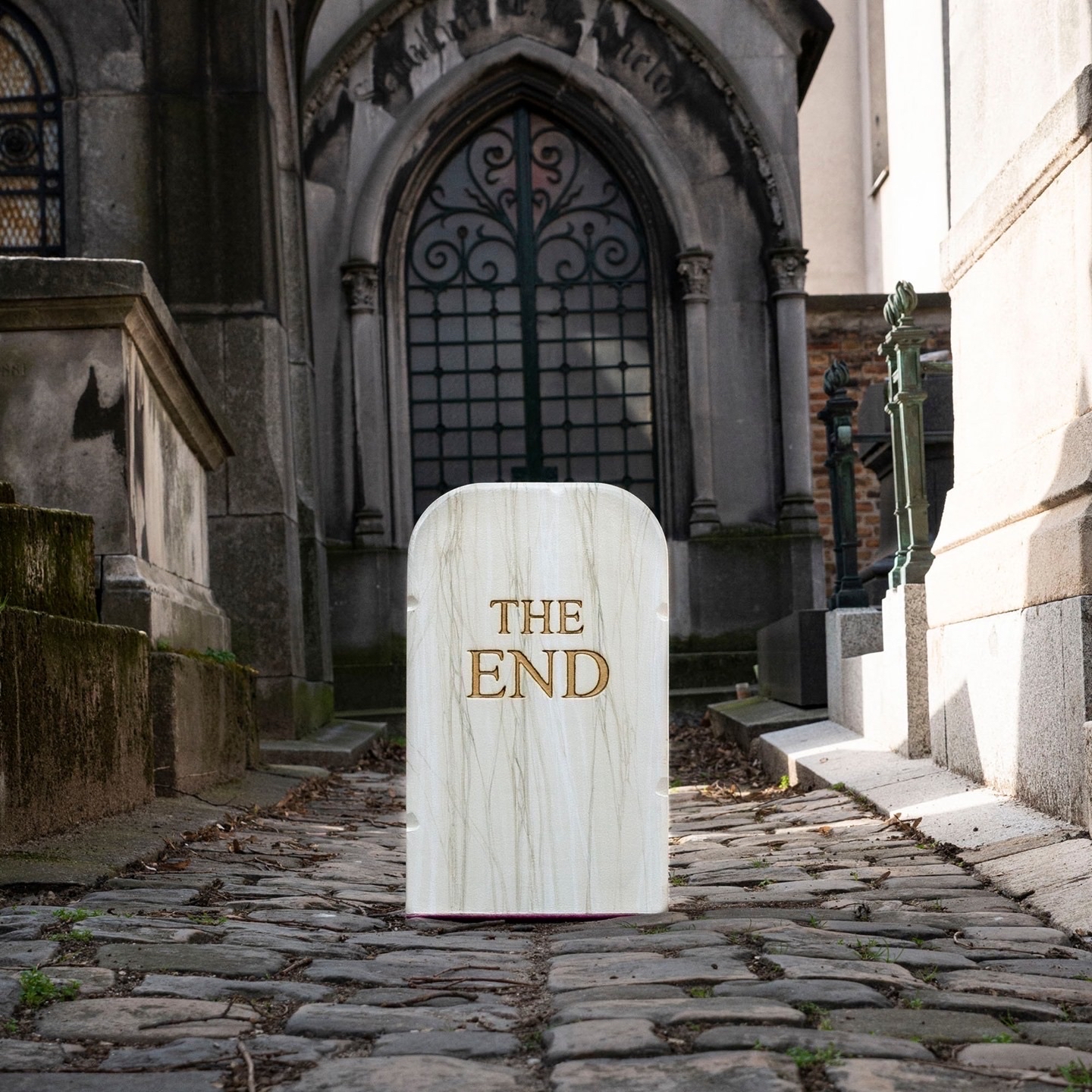 -The End白金色墓碑小凳